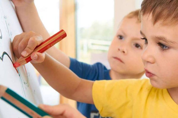 Waskrijt, kleurpotlood en aquarelpotlood in 1. Uitgesproken kleuren op lichte en donkere ondergrond. Schrijft op onze matten, papier, glas, metaal, steen, hout etc. Zeer gemakkelijk te verwijderen van glas, zonder strepen.